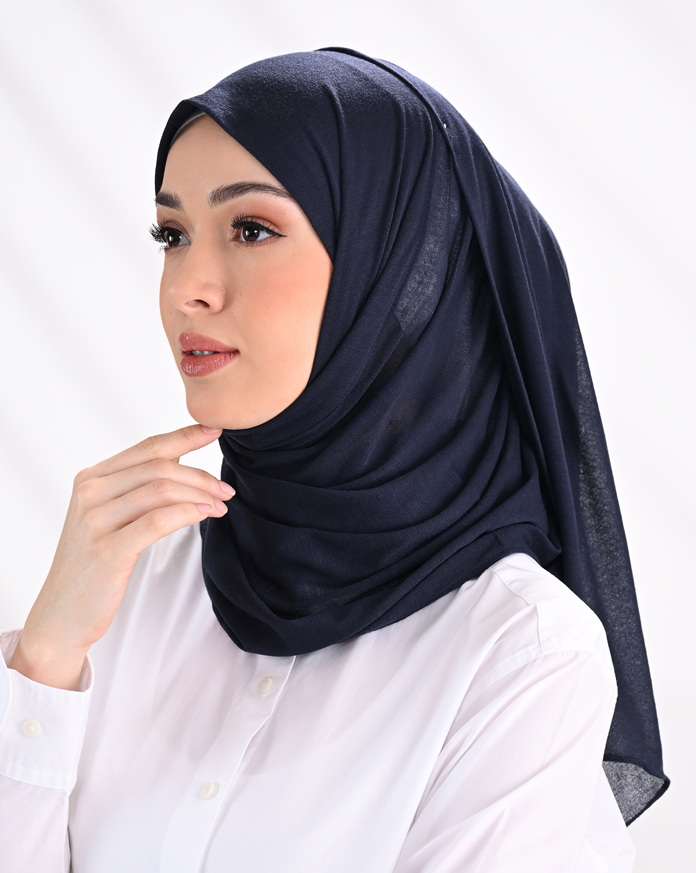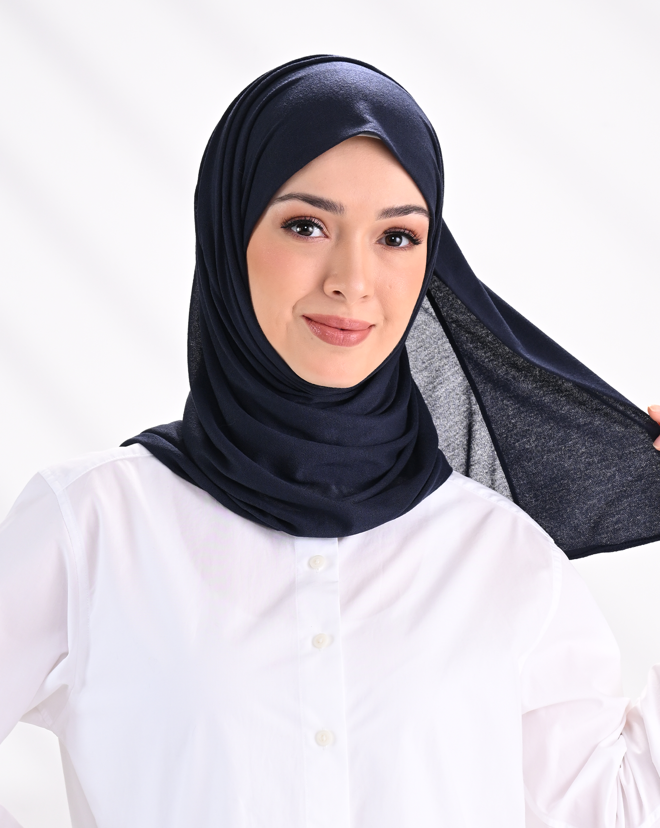 Designed for versatility, Muse features two styling options — wear the folded side with the button for an instant hijab look, or flip it to the non-folded side for a more freestyle styling.